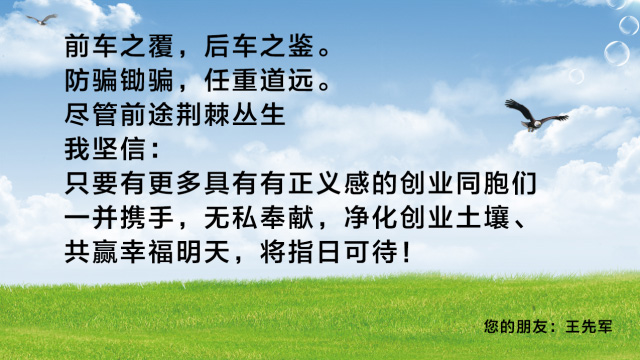 E、如果你曾經(jīng)在其他地方因購(gòu)買洗滌劑設(shè)備和車用尿素設(shè)備上當(dāng)受騙,由湖南富達(dá)日化發(fā)起成立的中國(guó)創(chuàng)業(yè)者防騙鋤騙互助沙龍,將協(xié)助你合法維權(quán)挽回?fù)p失,微信號(hào):18874912888;