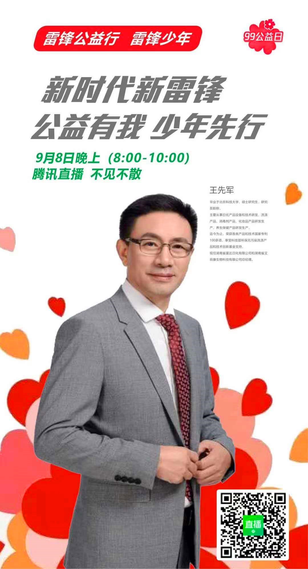2020年9月8日晚上8點(diǎn),富達(dá)日化王先軍研究員作為直播嘉賓,以:新時(shí)代、新雷鋒、公益有我、少年先行,為主題開展一場別開生面的直播活動(dòng),呈現(xiàn)一場深耕在公益領(lǐng)域的思想分享盛會(huì),突破傳統(tǒng)思維方式,廣泛發(fā)揚(yáng)雷鋒精神,探索雷鋒精神的內(nèi)核。