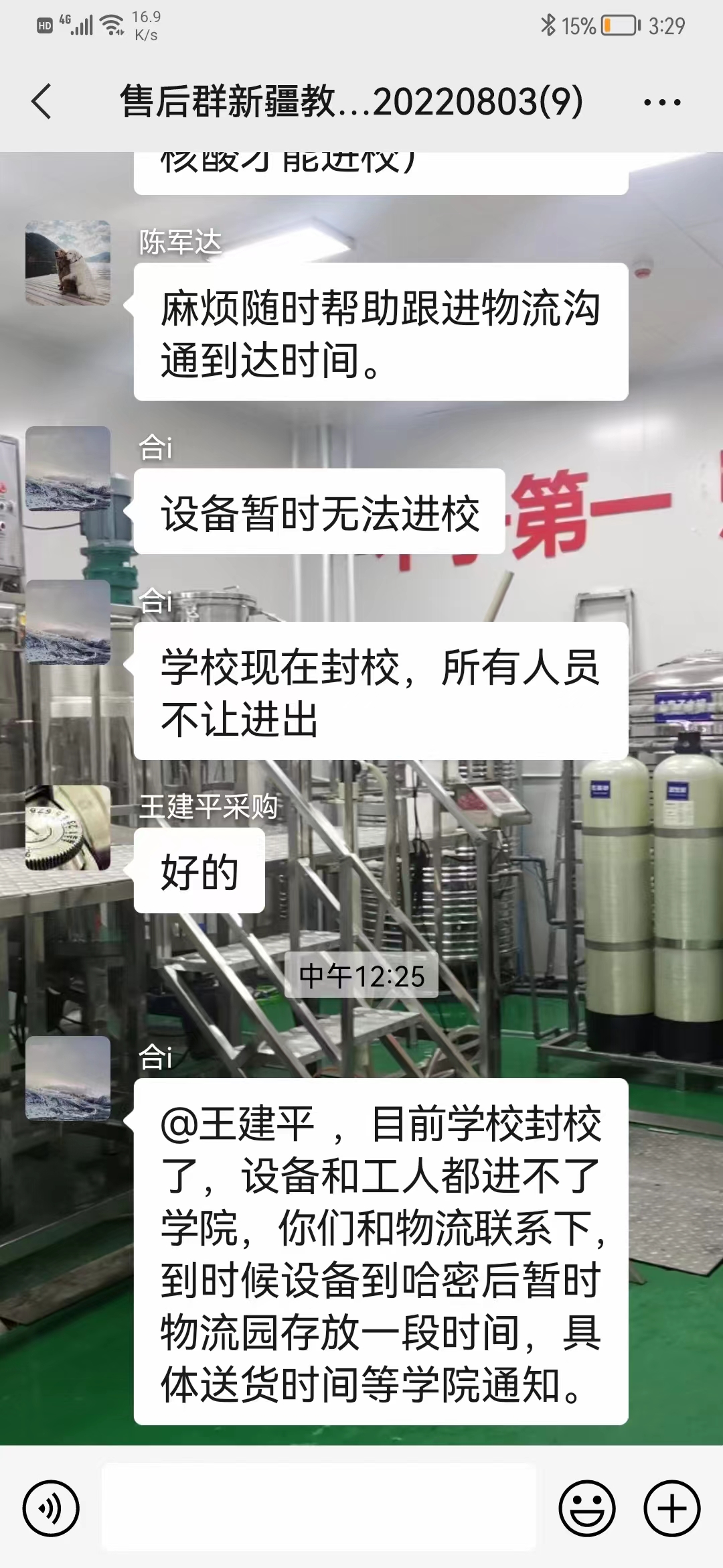 好事多磨,發(fā)往新疆大學(xué)系列日化設(shè)備因?yàn)橐咔闊o(wú)法正常安裝,期待疫情早日遠(yuǎn)去!