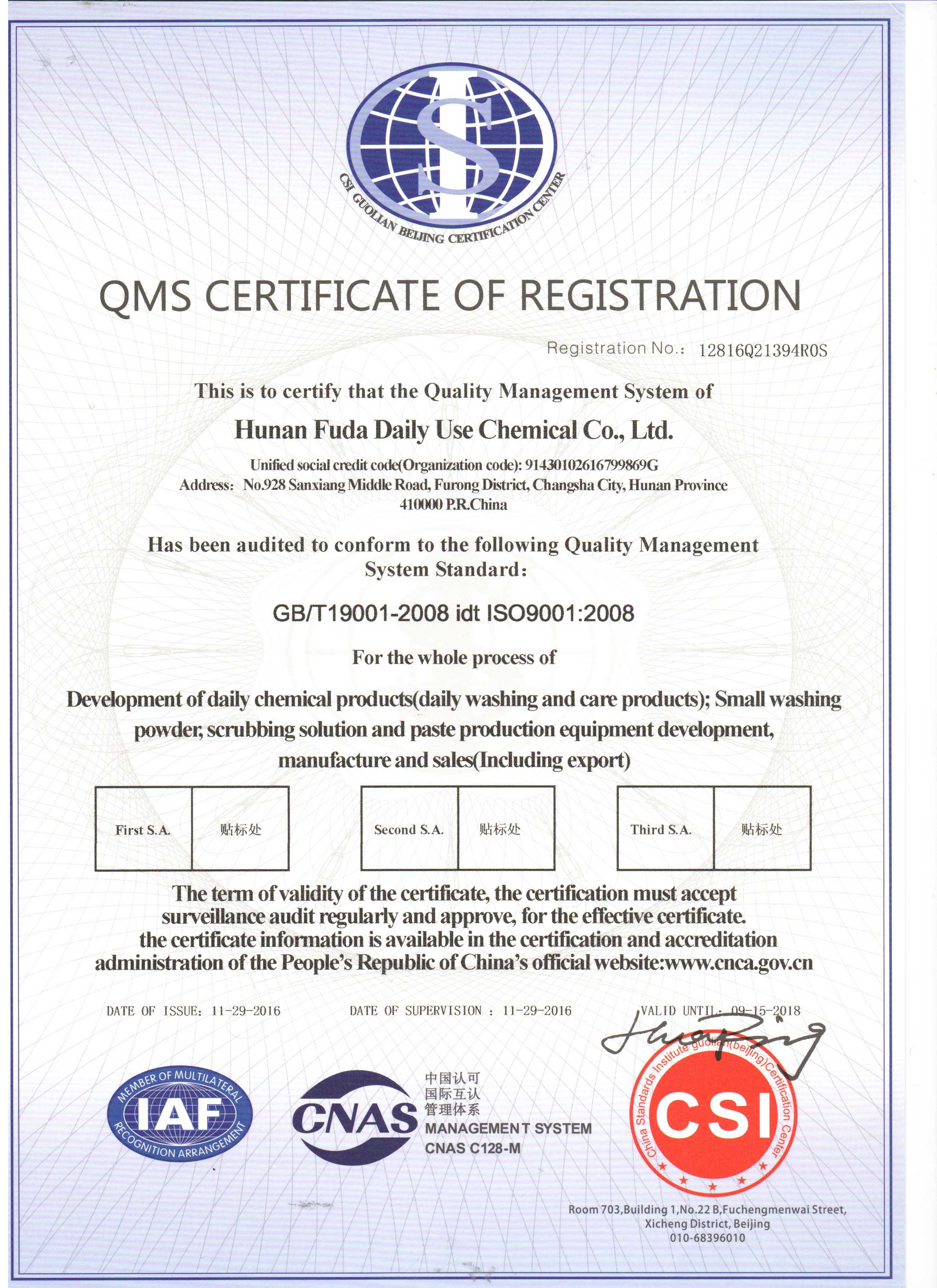 富達(dá)日化通過努力于2016年11月獲得 ISO9001國際質(zhì)量管理體系認(rèn)證和ISO14001國際環(huán)境認(rèn)證。富達(dá)日化建于1985年,原名富達(dá)洗衣粉廠,1997年成立湖南省富達(dá)日化有限公司,下設(shè)富達(dá)日化設(shè)備廠、富達(dá)洗滌用品廠、艾菻康生物科技有限公司、富達(dá)小發(fā)明家搖籃教育科技有限公司,是一家具有產(chǎn)品進(jìn)出口資格的綜合性企業(yè)。公司地處湖南長沙市中心,是一代偉人毛澤東主席及原國家主席劉少奇同志故鄉(xiāng)。地理位置優(yōu)越,交通便捷。湖南省富達(dá)日化有限公司主要生產(chǎn)銷售各種洗滌用品、洗衣粉生產(chǎn)設(shè)備、系列液體洗滌劑生產(chǎn)設(shè)備、肥皂、透明皂設(shè)備、顆粒成型機(jī)、化工干燥設(shè)備、反滲透水處理器等日化機(jī)械,集日化新技術(shù)產(chǎn)品研發(fā)、設(shè)備和洗滌產(chǎn)品生產(chǎn)銷售、日化產(chǎn)品分析化驗(yàn)和技術(shù)服務(wù)于一體,先后通過了ISO質(zhì)量管理體系認(rèn)證、CE認(rèn)證。公司擁有多項(xiàng)新技術(shù)產(chǎn)品國家專利,曾兩次獲得中國國際新技術(shù)產(chǎn)品博覽會(huì)科技創(chuàng)新金獎(jiǎng),享受國家科技部重點(diǎn)立項(xiàng)產(chǎn)品創(chuàng)新基金支持。設(shè)備和技術(shù)遍布全國各地,并出口越南、哈薩克斯坦 、馬來西亞、俄羅斯、伊朗、非洲等多個(gè)國家和地區(qū)。