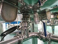 2)洗潔精設(shè)備結(jié)構(gòu):包含攪拌裝置,分散剪切裝置,循環(huán)乳化裝置,減泡裝置,小樣回流系統(tǒng),夾層水域恒溫裝置,產(chǎn)品溫顯裝置,控制箱等;
