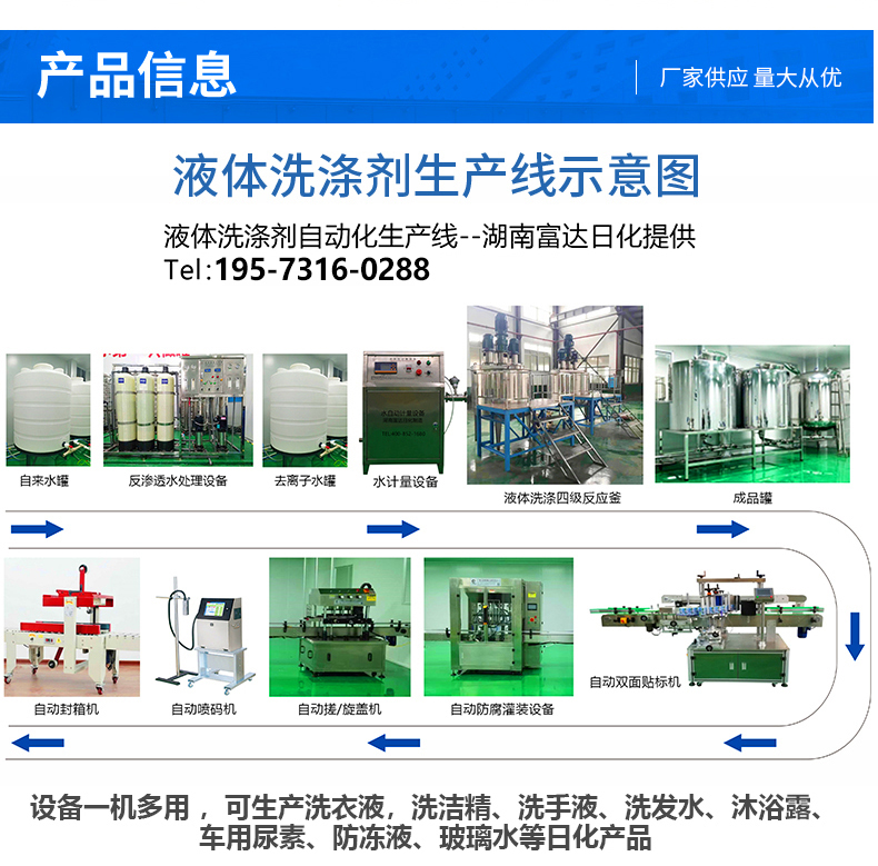 設(shè)備多功能:能一機(jī)多用生產(chǎn)洗潔精,84消毒液,洗衣液,洗發(fā)水,沐浴露等100多種液態(tài)洗滌產(chǎn)品 |