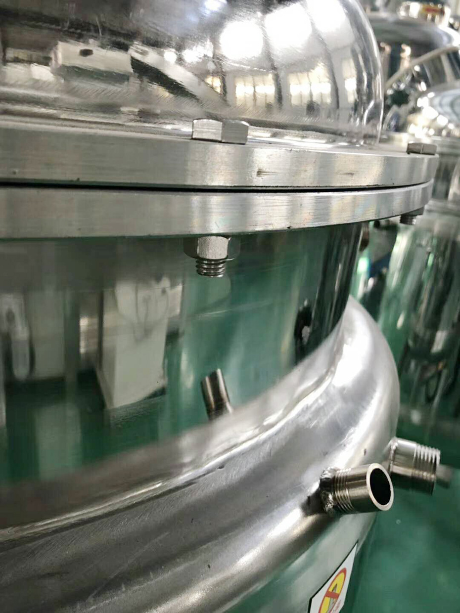 二、雙層加熱的反應(yīng)釜一臺(tái),必須是夾層內(nèi)恒溫加熱,而決不是反應(yīng)釜內(nèi)部安裝發(fā)熱管直接加熱,否則,發(fā)熱管遇到化學(xué)原料長(zhǎng)期接觸后容易腐蝕后導(dǎo)電,引發(fā)人身安全事故,同時(shí)違反國(guó)家安全法會(huì)遭受處罰,如果用設(shè)備內(nèi)部直接加熱的反應(yīng)釜生產(chǎn)其他洗滌劑產(chǎn)品,還會(huì)因?yàn)樵细g生銹后的重金屬引起洗滌劑顏色變黃變質(zhì),設(shè)備中包含攪拌機(jī),剪切乳化機(jī)、離心循環(huán)乳化自動(dòng)排料機(jī),自動(dòng)控制柜,每套價(jià)格在18000以上自行選擇;